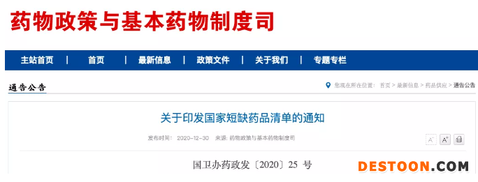 12月29日,國家衛(wèi)健委發(fā)布《關(guān)于印發(fā)國家短缺藥品清單的通知》并同時(shí)發(fā)布“國家短缺藥品清單”和“國家臨床必需易短缺藥品重點(diǎn)監(jiān)測清單”。