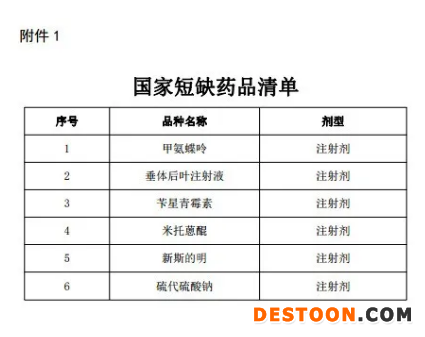 據(jù)賽柏藍(lán)梳理,國家短缺藥品清單共納入6個(gè)藥品,分別是甲氨蝶呤、垂體后葉注射液、芐星青霉素、米托蒽醌、新斯的明、硫代硫酸鈉。