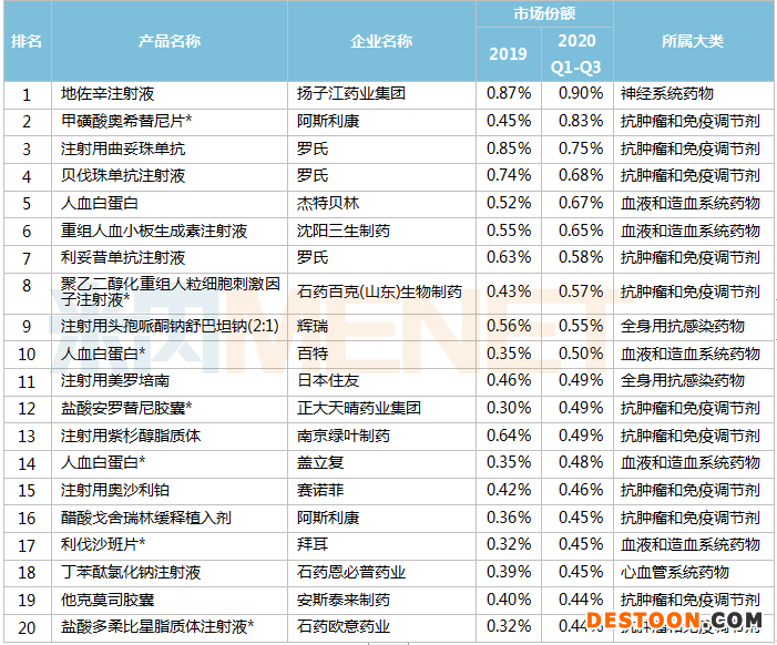 重點(diǎn)城市公立醫(yī)院化藥品牌TOP20