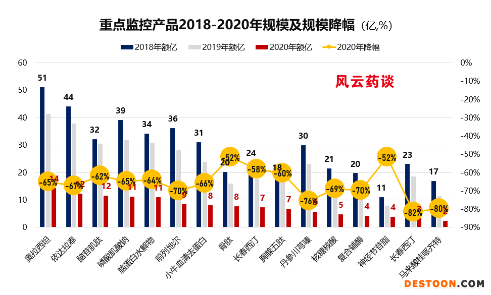 2、瘦死的駱駝比驢大:原來都是20億起步的單品,不在醫(yī)保了單品還是輕松過億,不得不讓很多其他產(chǎn)品“羨慕嫉妒恨”。