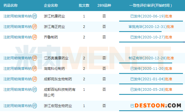 注射用帕瑞昔布鈉此前過評(píng)企業(yè)