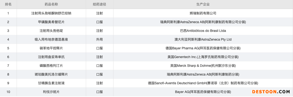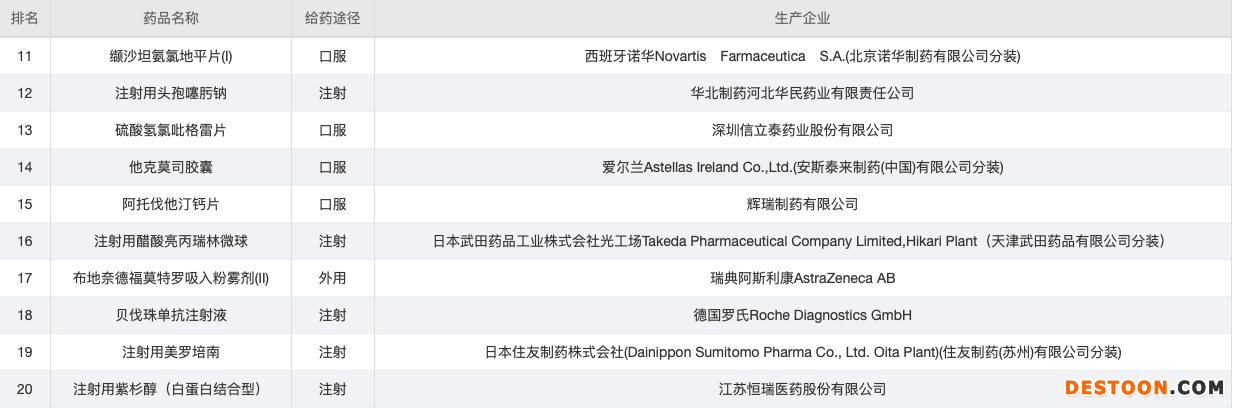 總的來(lái)看,名單變化不大,讓我們看一下最新的藥品銷售金額Top20的情況。