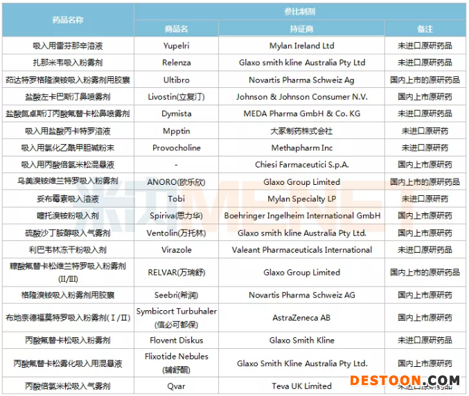 46個吸入劑公布參比制劑,這19個未有企業(yè)布局