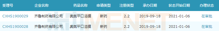 齊魯制藥奧氮平口溶膜上市申請(qǐng)情況