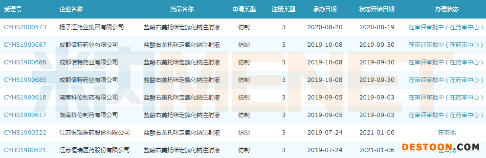 鹽酸右美托咪定氯化鈉注射液仿制申請(qǐng)情況