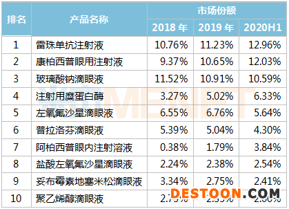 中國(guó)公立醫(yī)療機(jī)構(gòu)終端眼科用藥產(chǎn)品TOP10