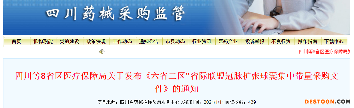 1月11日,四川藥械采購(gòu)監(jiān)管官網(wǎng)發(fā)布《“六省二區(qū)”省際聯(lián)盟冠脈擴(kuò)張球囊集中帶量采購(gòu)文件》(下稱《帶量采購(gòu)文件》)。