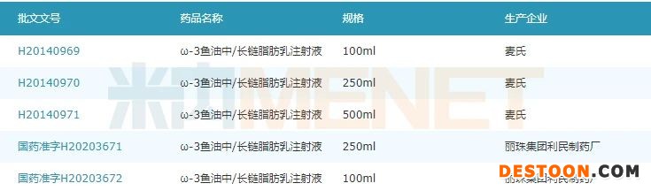 圖2:目前ω-3魚(yú)油中/長(zhǎng)鏈脂肪乳注射液的批文情況