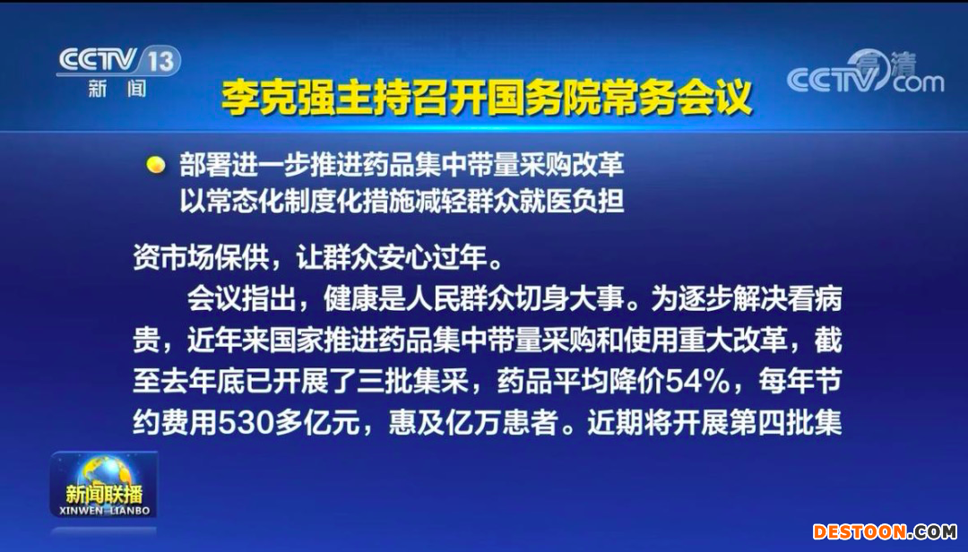 同日,國務(wù)院總理主持召開國務(wù)院常務(wù)會(huì)議,部署進(jìn)一步推進(jìn)藥品集中帶量采購改革,以常態(tài)化制度化措施減輕群眾就醫(yī)負(fù)擔(dān)。會(huì)議指出,近期將開展第四批集采,并擴(kuò)大醫(yī)用耗材集采范圍。