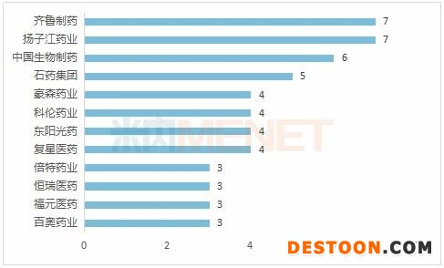 入選品種達(dá)3個(gè)及以上的原研藥企(單位:個(gè))