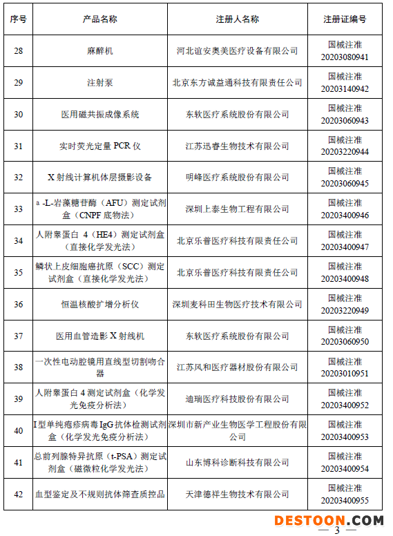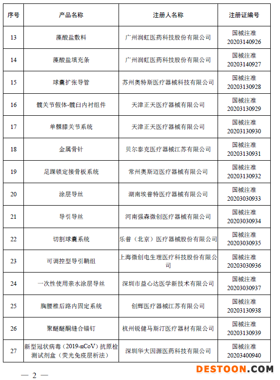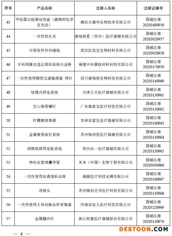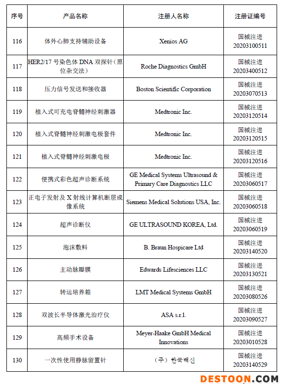 1月20日訊 2020年12月,國家藥品監(jiān)督管理局共批準注冊醫(yī)療器械產(chǎn)品155個。其中,境內(nèi)第三類醫(yī)療器械產(chǎn)品108個,進口第三類醫(yī)療器械產(chǎn)品24個,進口第二類醫(yī)療器械產(chǎn)品20個,港澳臺醫(yī)療器械產(chǎn)品3個(具體產(chǎn)品見附件)。