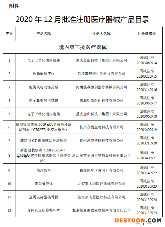 附件:2020年12月批準注冊醫(yī)療器械產(chǎn)品目錄