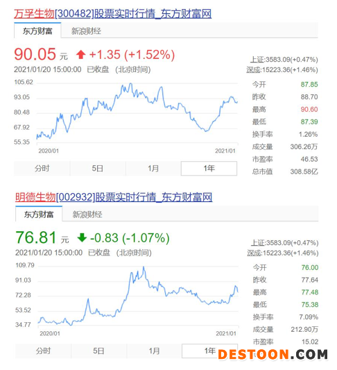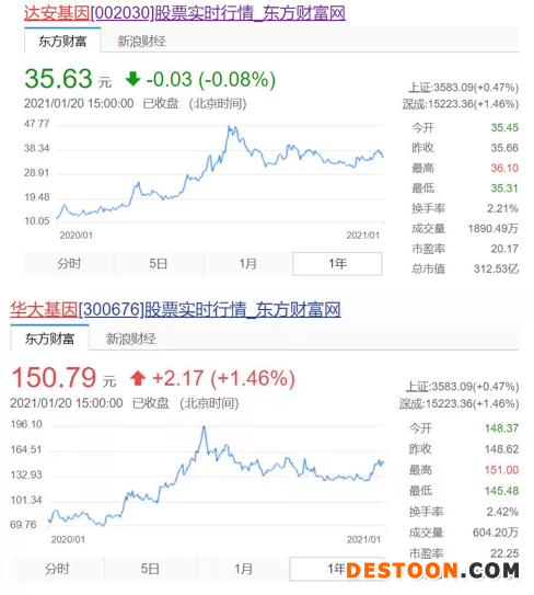 整個2020年,中國抗疫在中華民族史冊、人類發(fā)展史冊上寫下悲壯雄渾的篇章,大規(guī)模開展核酸和抗體檢測發(fā)揮著至關重要的作用。同時,資本市場也助推檢測試劑廠商站上了風口,以達安基因、萬孚生物、華大基因、明德生物、麗珠集團等上市公司為代表,股價在過去的一年掀起了巨大漲幅。