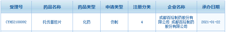 圖1:成都百裕制藥的托伐普坦片申報(bào)情況