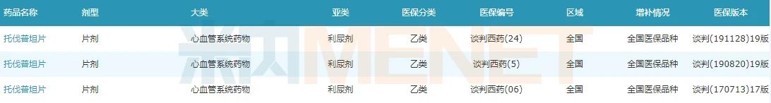 圖2:托伐普坦片的醫(yī)保情況