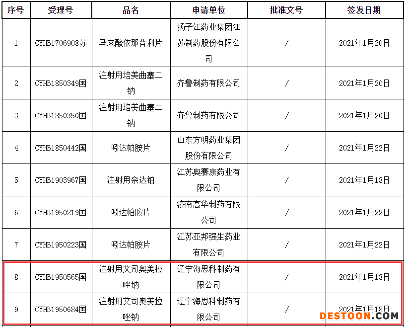 1月28日訊 1月27日,國家藥監(jiān)局官網(wǎng)顯示,遼寧海思科制藥的注射用艾司奧美拉唑鈉以補(bǔ)充申請(qǐng)獲批過評(píng)。日前,江蘇正大豐海制藥的注射用艾司奧美拉唑鈉也以補(bǔ)充申請(qǐng)獲批過評(píng)。米內(nèi)網(wǎng)數(shù)據(jù)顯示,2019年中國公立醫(yī)療機(jī)構(gòu)終端艾司奧美拉唑(埃索美拉唑)注射劑銷售額突破30億元。截至目前,注射用艾司奧美拉唑鈉已有正大天晴藥業(yè)集團(tuán)、江蘇奧賽康藥業(yè)等7家企業(yè)過評(píng)。