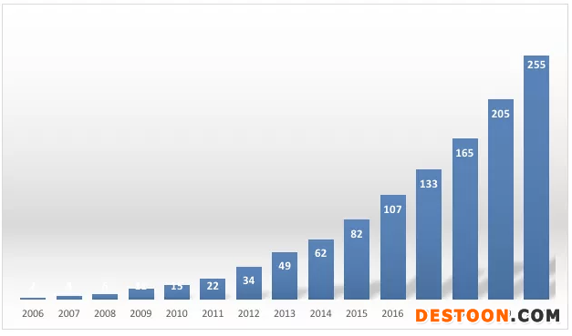 據(jù)艾媒網(wǎng)分析,2006年至2016年中藥配方顆粒市場規(guī)模由2億元增長到107億元,年復(fù)合增長率高達48.9%,預(yù)計到2020年中藥配方顆粒市場規(guī)模將達到255億元。有機構(gòu)預(yù)測中藥配方顆粒行業(yè)在未來五年的市場規(guī)模仍將保持快速增長,預(yù)計到2023年,行業(yè)規(guī)模將達492.1億元。