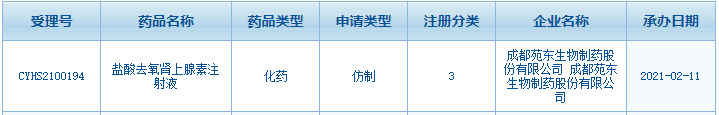 圖1:苑東的鹽酸去氧腎上腺素注射液注冊情況