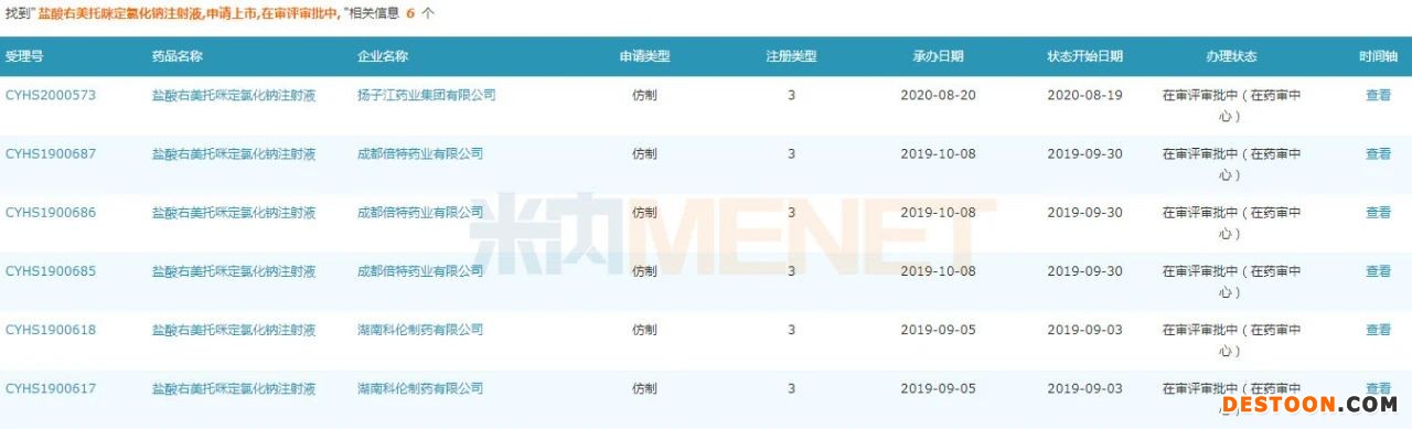 截至目前,鹽酸右美托咪定注射液已有江蘇正大清江制藥、石藥銀湖制藥、石家莊四藥等7家企業(yè)以仿制3類提交上市申請在審評審批中(在藥審中心),鹽酸右美托咪定氯化鈉注射液有揚子江藥業(yè)集團、湖南科倫制藥、成都倍特藥業(yè)3家企業(yè)以仿制3類提交上市申請在審評審批中(在藥審中心),獲批后將視同過評。