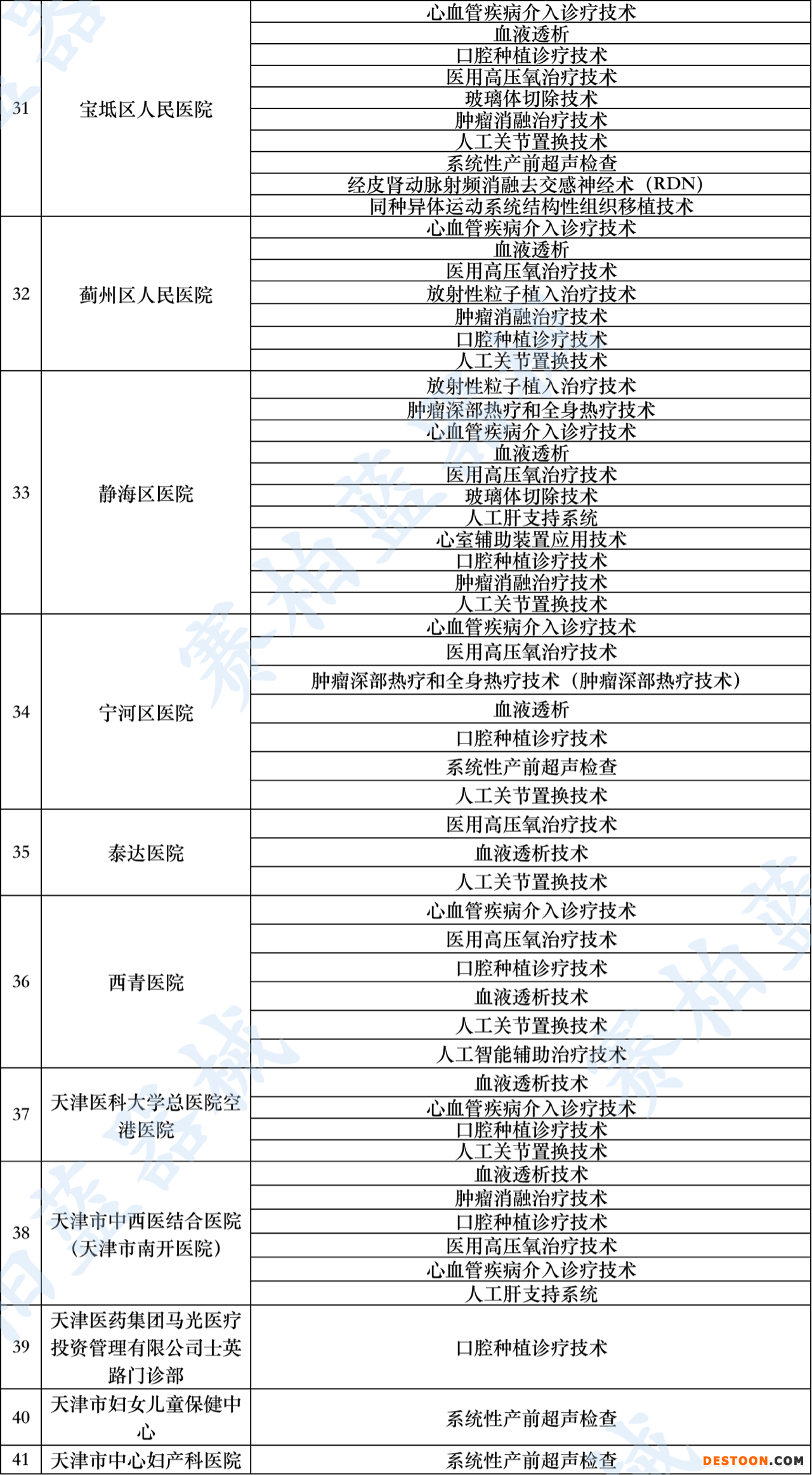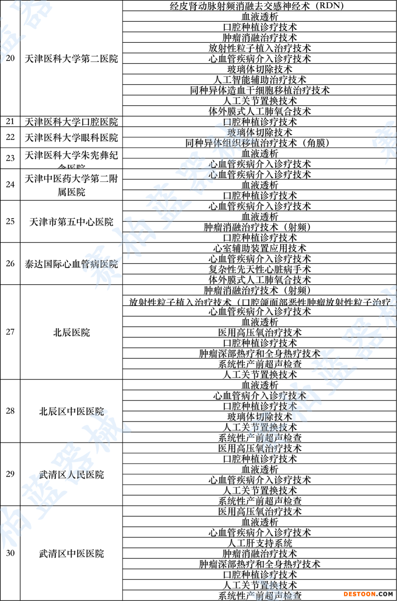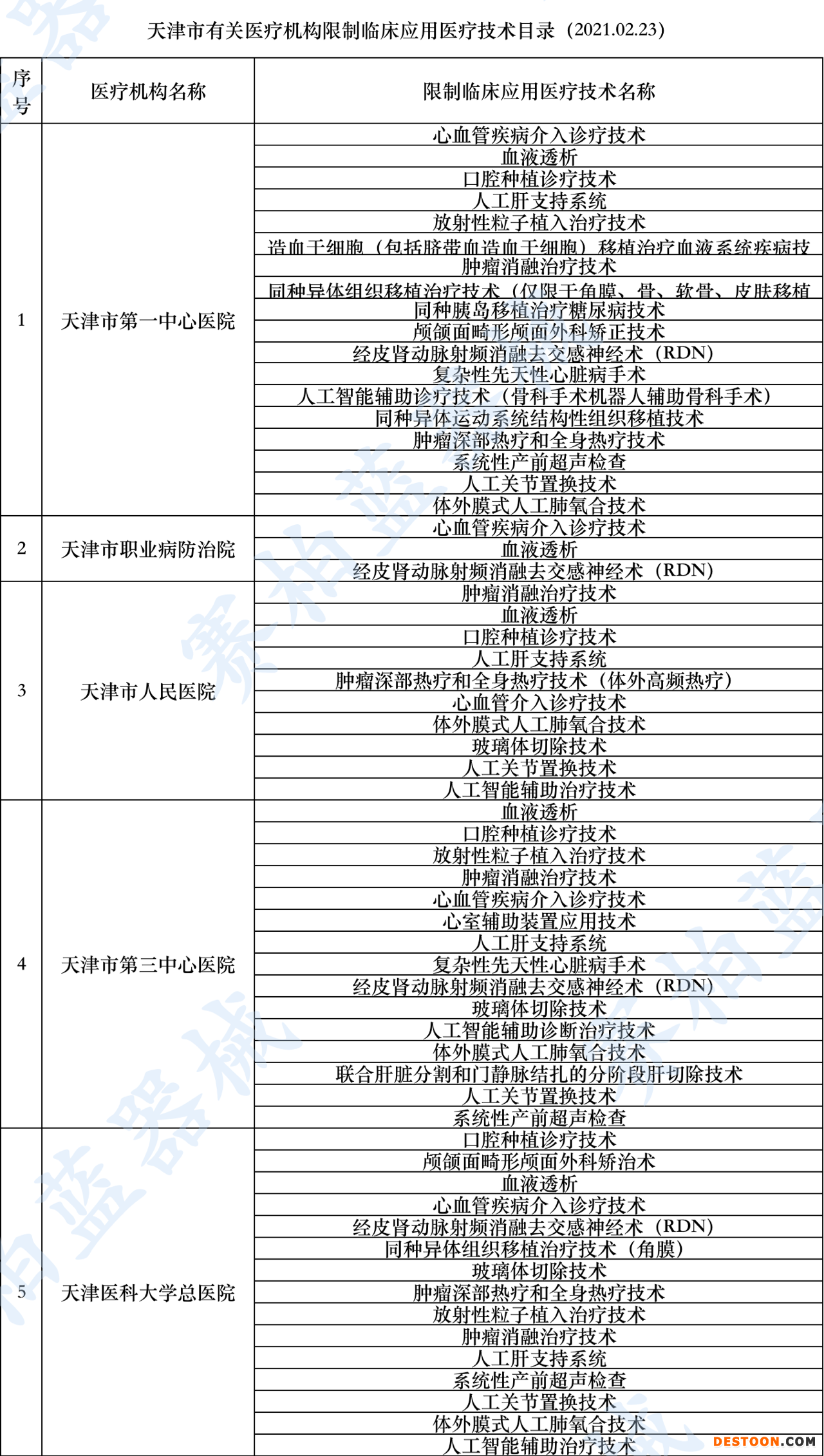日前,天津衛(wèi)健委發(fā)布《有關(guān)醫(yī)療機(jī)構(gòu)限制臨床應(yīng)用醫(yī)療技術(shù)目錄》的通知,對天津市大批醫(yī)療機(jī)構(gòu)限制臨床應(yīng)用醫(yī)療技術(shù)進(jìn)行公布(文末附名單)。包括心血管疾病介入診療技術(shù)、血液透析、神經(jīng)血管介入診療技術(shù)、人工膝關(guān)節(jié)置換技術(shù)、腫瘤消融治療技術(shù)等35項。