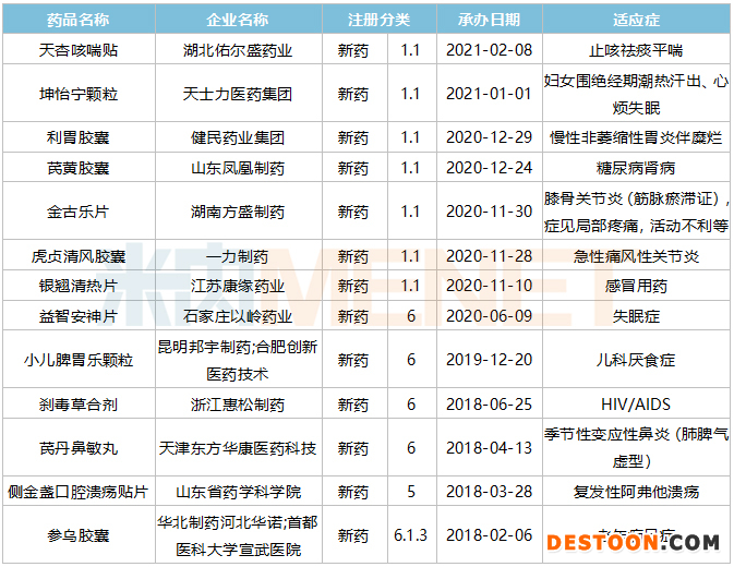 表4:2018年至今申報(bào)并在審的中成藥新藥情況