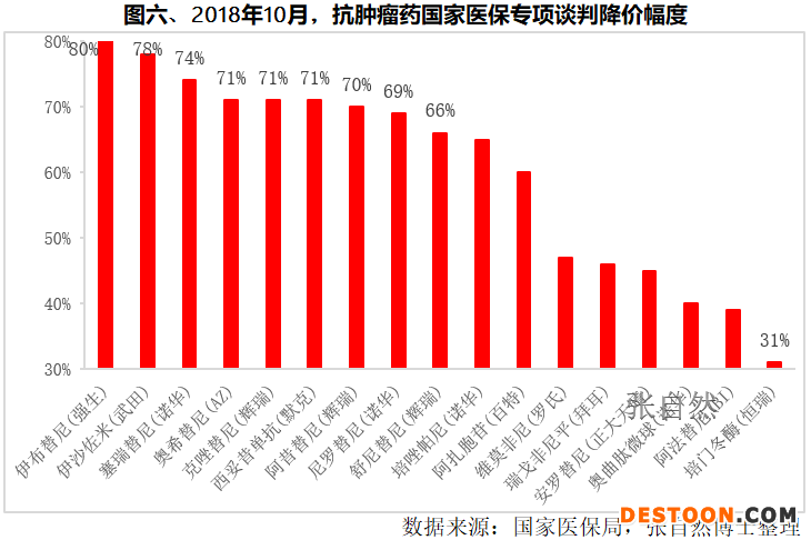 以前四批國(guó)家醫(yī)保談判為例,通過(guò)降價(jià)談判成功進(jìn)入醫(yī)保最多的品種就是抗腫瘤藥,占比高達(dá)35%。(圖五)