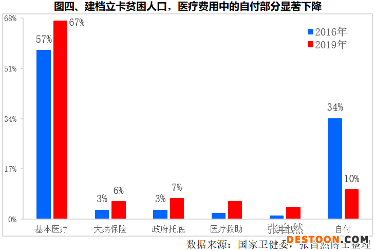 因醫(yī)保制度安排,建檔立卡貧困人口醫(yī)療費(fèi)用中的自費(fèi)部分占比,已由2016年的34%下降到了2019年的10%,大幅減輕了貧困人口的醫(yī)療負(fù)擔(dān)。(圖四)