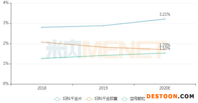 米內(nèi)網(wǎng)數(shù)據(jù)顯示,近幾年在重點城市實體藥店婦科中成藥市場銷售額均保持20億元左右,2020年受疫情影響,預計同比有所下滑。從亞類格局來看,婦科炎癥用藥和婦科調(diào)經(jīng)藥仍然是兩大主力,市場份額占比合計超過80%。