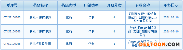 3月11日訊 3月10日,科倫、齊魯、沈陽紅旗制藥以仿制4類提交恩扎盧胺軟膠囊上市申請(qǐng),該產(chǎn)品在國內(nèi)暫無首仿獲批。恩扎盧胺(恩雜魯胺)是一款雄激素受體抑制劑,2019年全球銷售額超過40億美元。