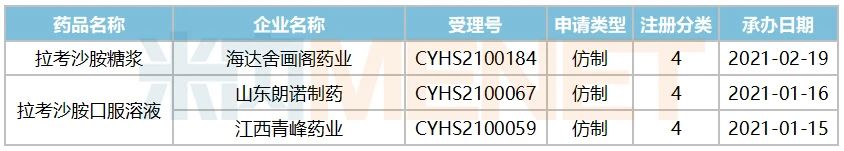 表1:目前在審的拉考沙胺糖漿及口服溶液仿制上市申請情況