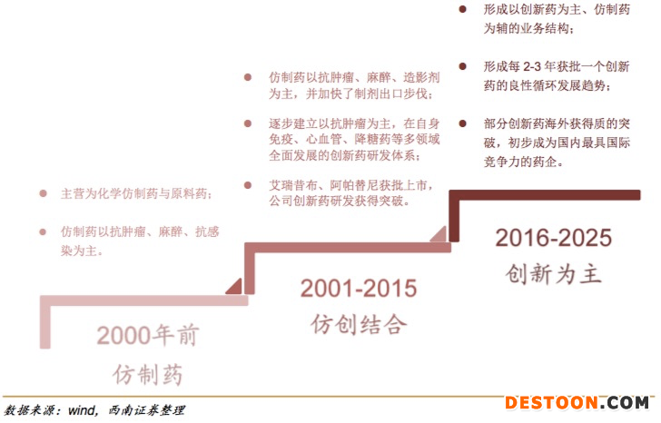 復盤恒瑞近30年的發(fā)展歷史,其研發(fā)歷程分為三個階段: