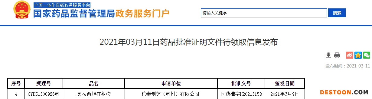 奧拉西坦注射液上市申請(qǐng)?jiān)趯?strong>企業(yè)