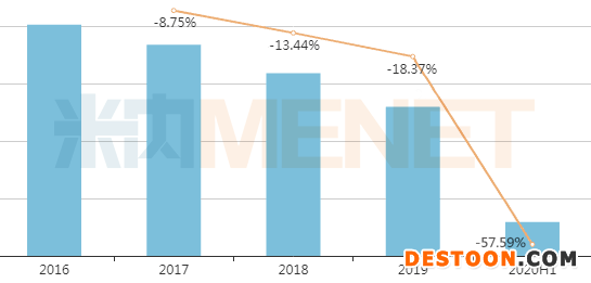 米內(nèi)網(wǎng)數(shù)據(jù)顯示,近年來(lái)奧拉西坦注射液在中國(guó)城市公立醫(yī)院、縣級(jí)公立醫(yī)院、城市社區(qū)中心以及鄉(xiāng)鎮(zhèn)衛(wèi)生院(簡(jiǎn)稱(chēng)中國(guó)公立醫(yī)療機(jī)構(gòu))終端銷(xiāo)售額持續(xù)下滑,從2016年的80億元下滑至2019年的51.9億元。