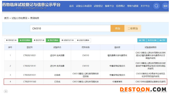 截至目前,作為對標(biāo)Dupixent的創(chuàng)新產(chǎn)品,CM310在中國的中重度哮喘適應(yīng)癥于2019年7月獲臨床試驗(yàn)?zāi)驹S可,并且已經(jīng)開展Ⅱ期臨床試驗(yàn)研究工作,未來按治療用生物制品1類新藥申報(bào)。