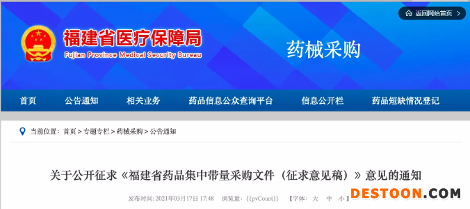 3月17日晚,全國明星醫(yī)改省份福建醫(yī)保局發(fā)布關(guān)于《福建省藥品集中帶量采購文件(征求意見稿)》的通知,并進(jìn)一步征求意見,截止日期到2021年3月24日17:00前。