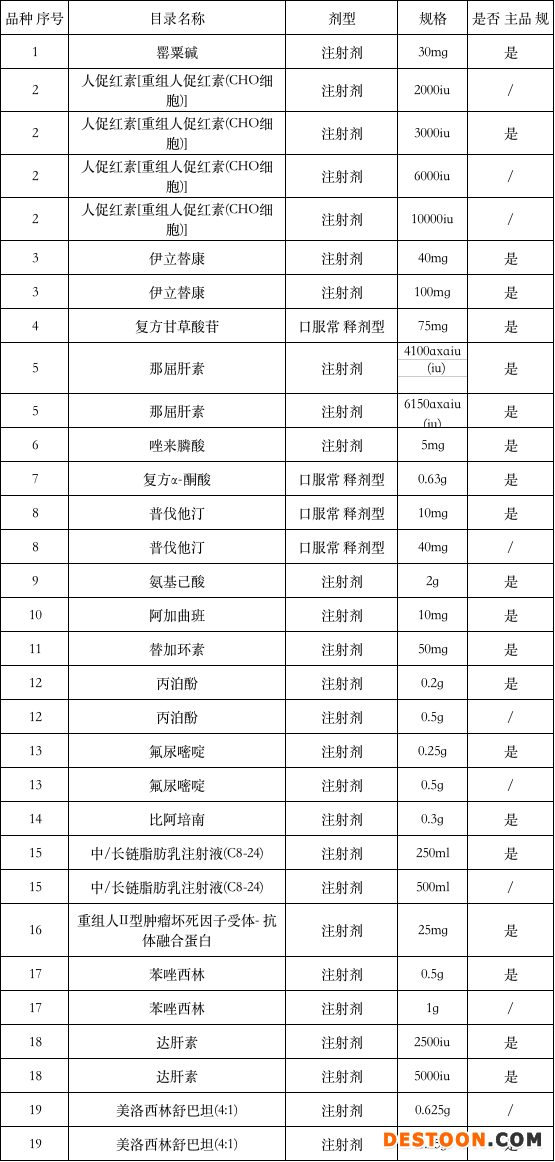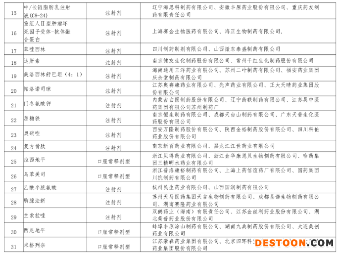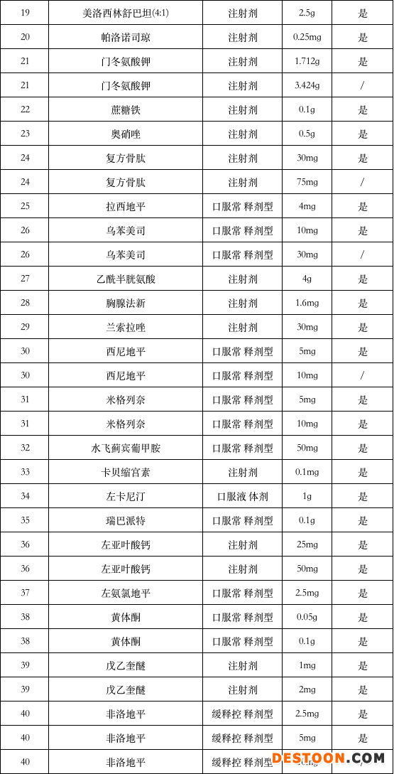 涉及伊立替康、罌粟堿、復(fù)方甘草酸苷、普伐他汀、替加環(huán)素、丙泊酚、氟尿嘧啶、比阿培南、美洛西林舒巴坦(4:1)、門冬氨酸鉀、胸腺法新、蘭索拉唑、米格列奈、左卡尼汀、左氨氯地平、黃體酮、非洛地平等。