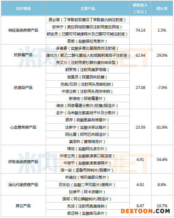 石藥集團(tuán)成藥業(yè)務(wù)各治療領(lǐng)域產(chǎn)品銷售情況