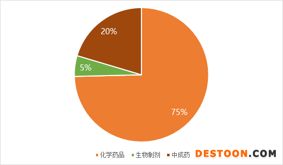 2020年上海市醫(yī)院藥品銷售市場化學藥品占比達75%,中成藥和生物制劑占比位列二、三,占比分別為20%和5%。