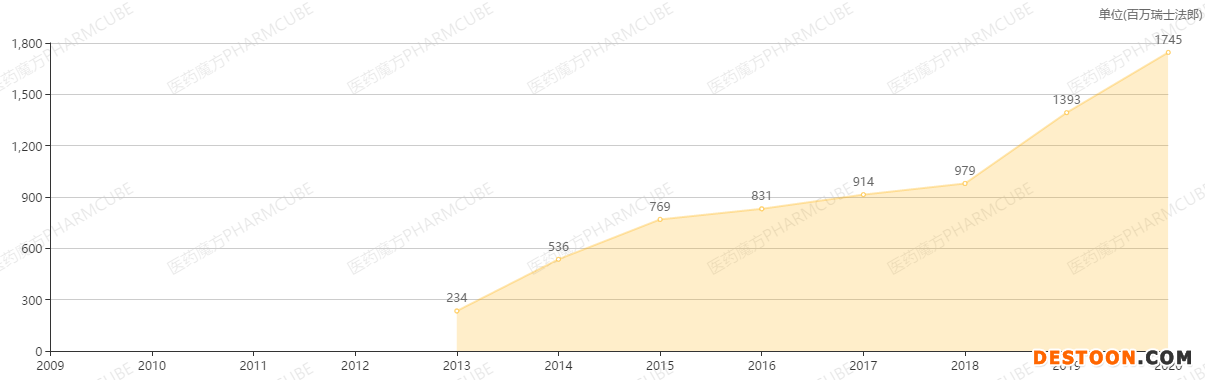 Kadcyla歷年銷售額