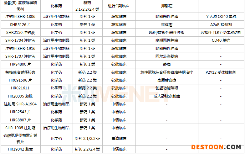 恒瑞醫(yī)藥重點(diǎn)在研新藥