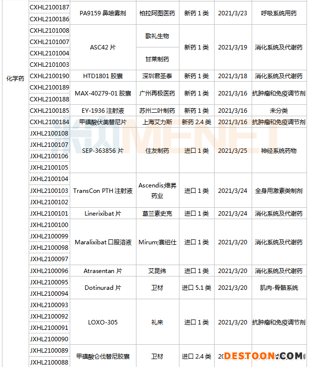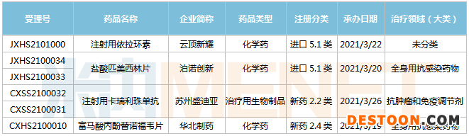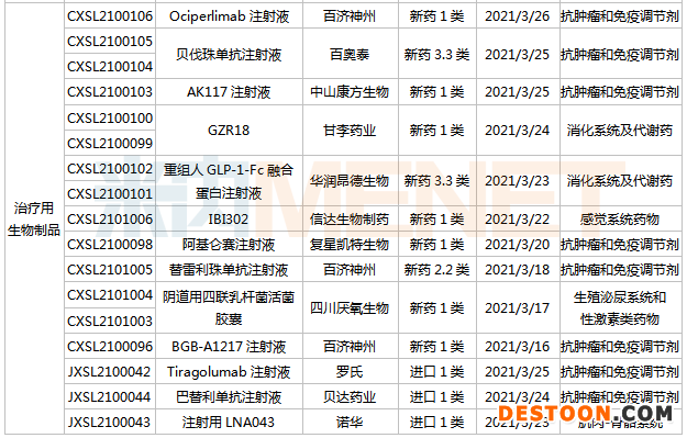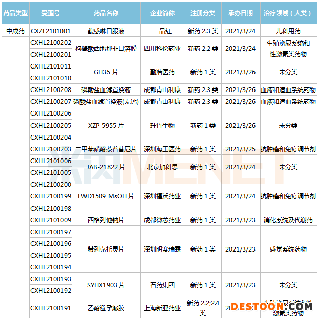 (3.13-3.26)獲承辦的國(guó)產(chǎn)/進(jìn)口新藥上市申請(qǐng)