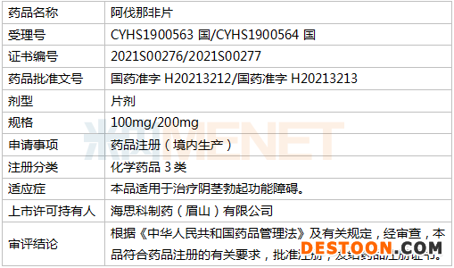 資料顯示,阿伐那非片最初由日本田邊三菱制藥株式會(huì)社授權(quán)美國(guó)VIVUS公司開發(fā)的用于治療男性勃起功能障礙的藥物,2012年4月在美國(guó)上市,商品名為Stendra。2013年6月被批準(zhǔn)在歐盟上市,商品名為Spedra。目前已在美國(guó)、德國(guó)、法國(guó)、意大利等多國(guó)上市,在國(guó)內(nèi)尚無生產(chǎn)和進(jìn)口,海思科開發(fā)的阿伐那非片是國(guó)內(nèi)首家仿制。