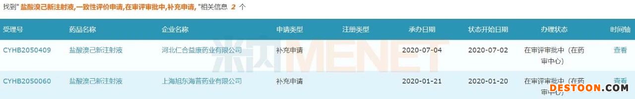 目前,溴己新注射劑有鹽酸溴己新注射液、注射用鹽酸溴己新和鹽酸溴己新葡萄糖注射液。其中,鹽酸溴己新注射液生產(chǎn)企業(yè)有華潤雙鶴藥業(yè)、四川美大康佳樂藥業(yè)、石家莊四藥等6家。其中,僅有四川美大康佳樂藥業(yè)和石家莊四藥兩家企業(yè)過評。此外,河北仁合益康藥業(yè)和上海旭東海普藥業(yè)的一致性評價補充申請在審評審批中,江西銀濤藥業(yè)|江西億友藥業(yè)、河北凱威制藥|廣州一品紅制藥以仿制3類報產(chǎn)在審評審批中,獲批后將視同過評。