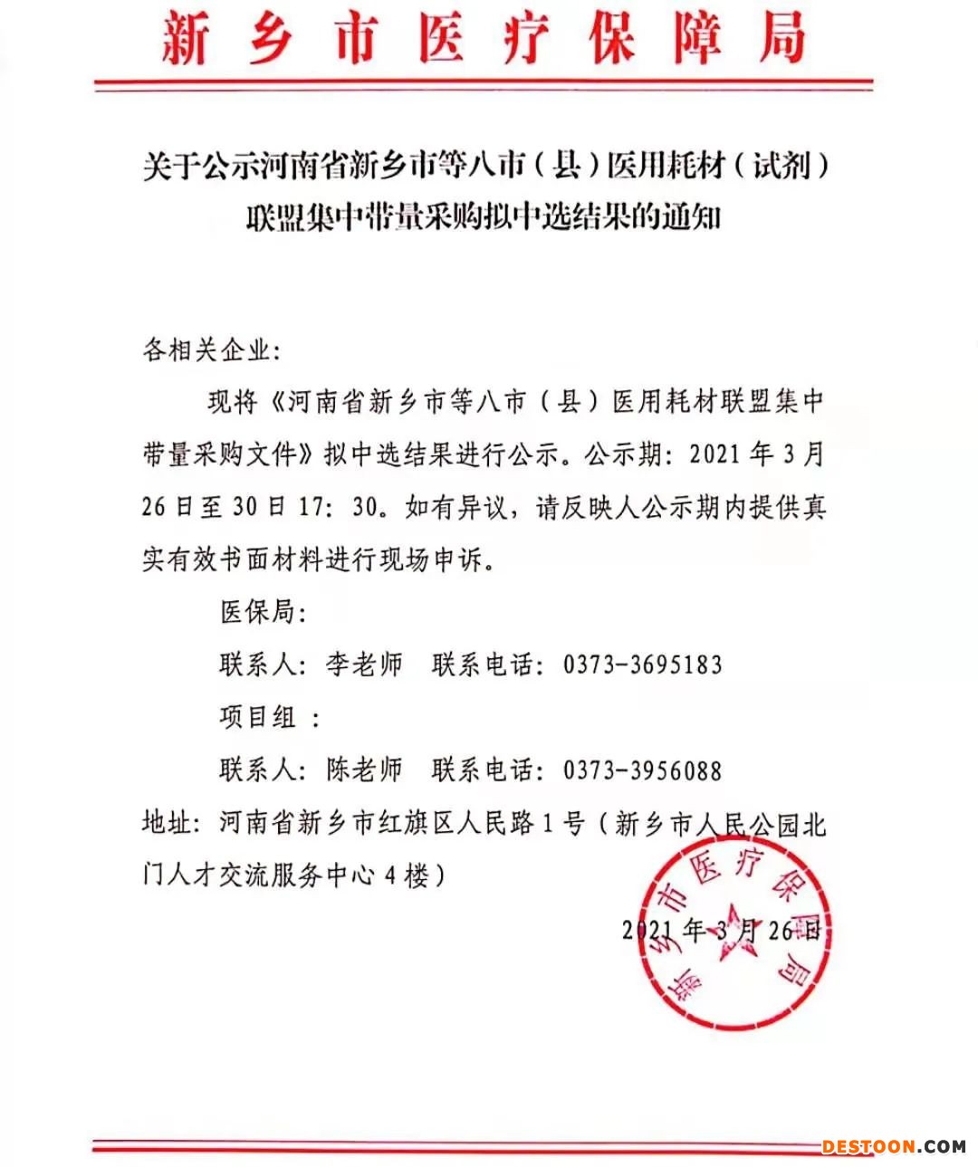 同時(shí),根據(jù)華招器械網(wǎng)信息,新鄉(xiāng)市藥品和醫(yī)用耗材聯(lián)盟集中采購平臺發(fā)布《關(guān)于公示河南省新鄉(xiāng)市等八市(縣)醫(yī)用耗材(試劑)聯(lián)盟集中帶量采購擬中選結(jié)果的通知》,發(fā)布本次的擬中選結(jié)果。