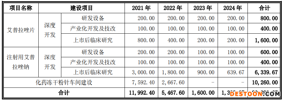圖1:艾普拉唑系列創(chuàng)新產(chǎn)品深度開(kāi)發(fā)及產(chǎn)業(yè)化升級(jí)項(xiàng)目具體投資計(jì)劃(單位:萬(wàn)元)