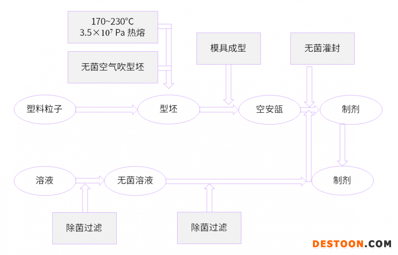 我想生產(chǎn)廠家及監(jiān)管機(jī)構(gòu)主要從用藥安全性、劑型給藥特性及資源集約等方面考慮。下面我們簡(jiǎn)單介紹一下BFS生產(chǎn)線的技術(shù)概況。