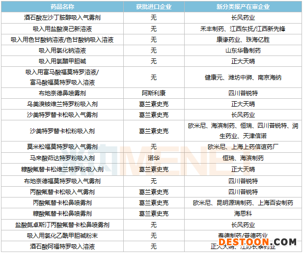 新分類報產(chǎn)在審且暫無首仿的吸入劑
