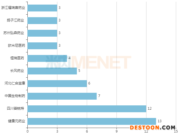 從企業(yè)申報情況看,10家企業(yè)新分類報產(chǎn)的吸入劑品種數(shù)達3個及以上,健康元以13個吸入劑領(lǐng)跑,其中4個已獲批生產(chǎn)并視同過評;四川普銳特醫(yī)藥以12個吸入劑緊接其后,其中3個已獲批生產(chǎn)并視同過評。