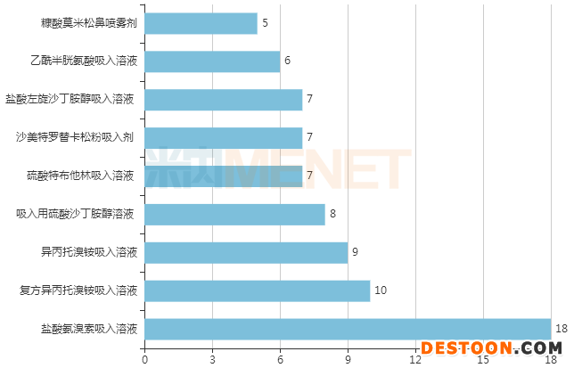米內(nèi)網(wǎng)重點省市公立醫(yī)院終端吸入劑TOP10