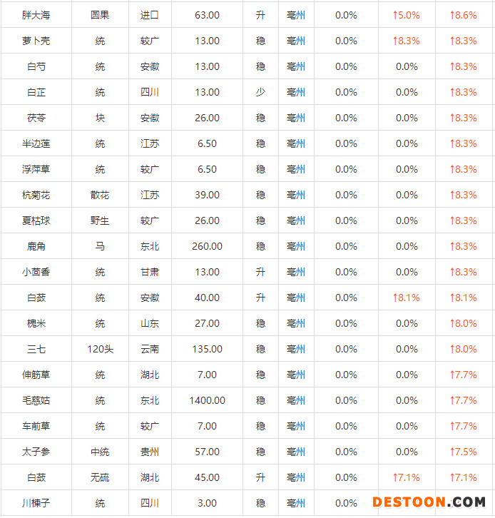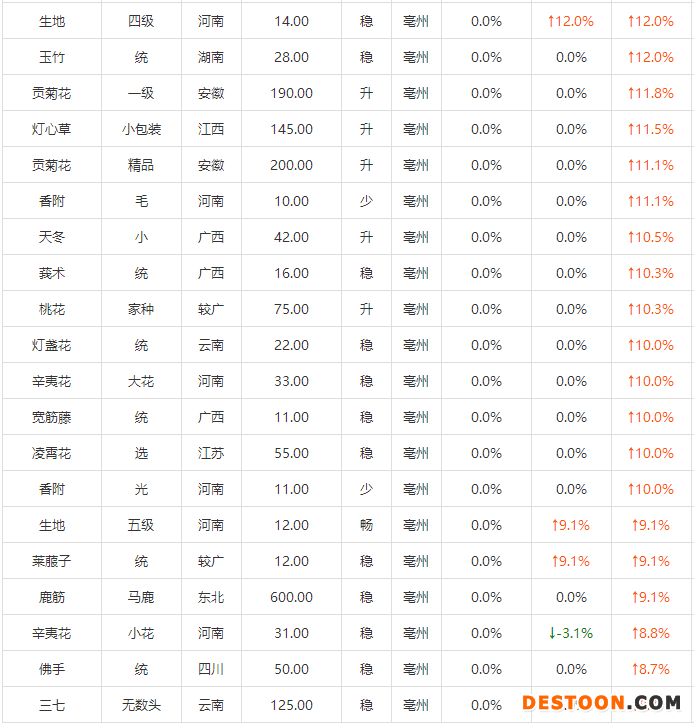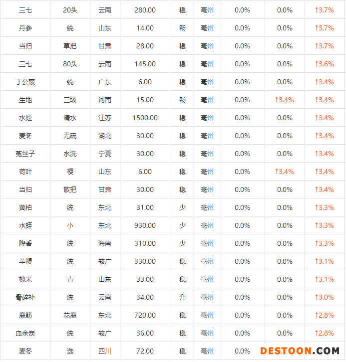 下附中藥材漲價(jià)名單: